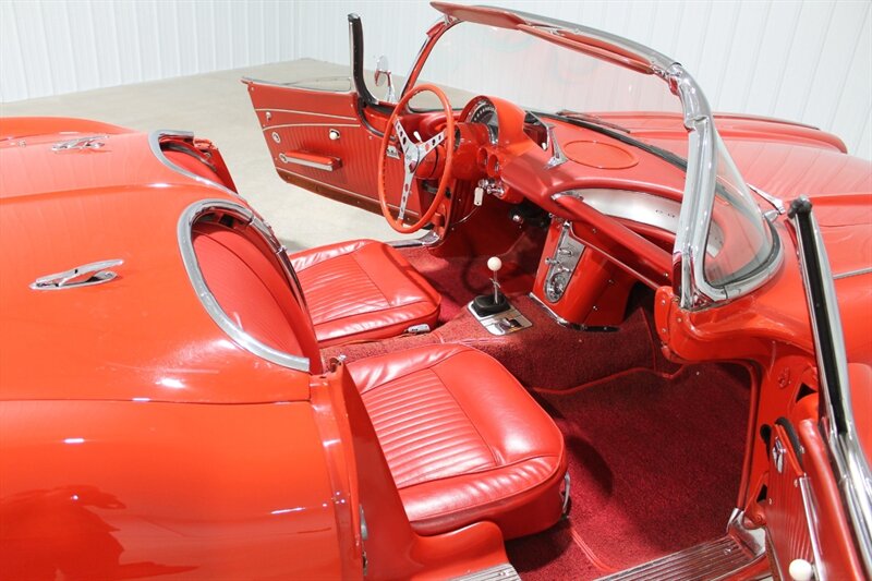 Collector Car Gallery is pleased to offer this lovely 1962 Chevrolet Corvette.  Powered by what is believed to be the numbers matching 327/340hp engine and 4 speed transmission.  The factory correct Roman Red paint shows well.  The chrome and stainless present well.  The white soft top is in good condition.  This car also has the rather unique factory option of power windows.  Running and driving as it should, this vehicle has underwent a fresh service and overhaul.  Drive this car anywhere.  Please call Rich (260)704-0234 for additional photos. video, or information.